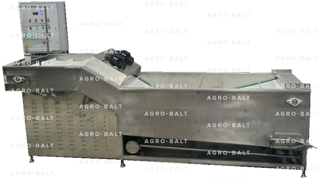 Замороженный продукт поступает на конвейер и проходит участок глазировки. На участке глазировки, замороженный продукт погружается целиком в охлажденную воду на несколько секунд и перемещается к наклонному участку. На подъемной части конвейера расположены вентиляторы обдува, которые служат для удаления лишней влаги с продукта, тем самым, ускоряя процесс застывания ледяной корочки и исключая слипание продукта.